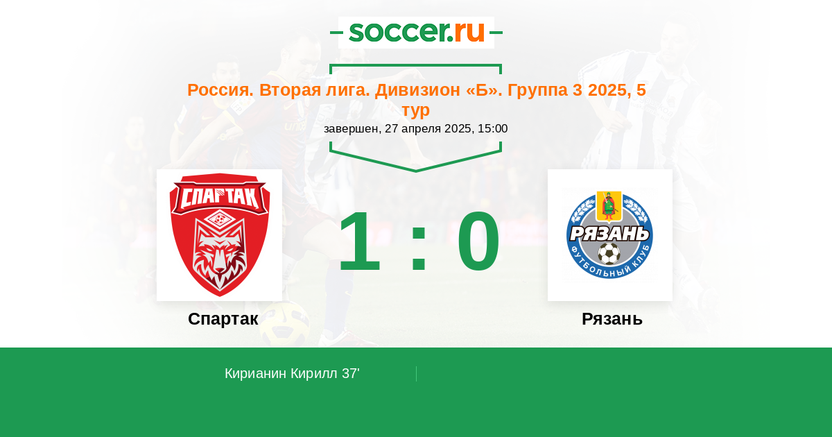 Протокол матча Спартак против Рязань