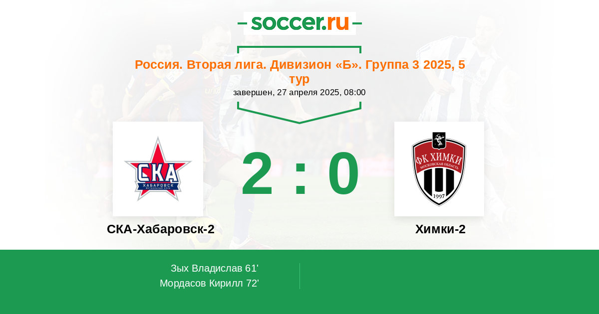 Расстановка матча СКА-Хабаровск-2 против Химки-2