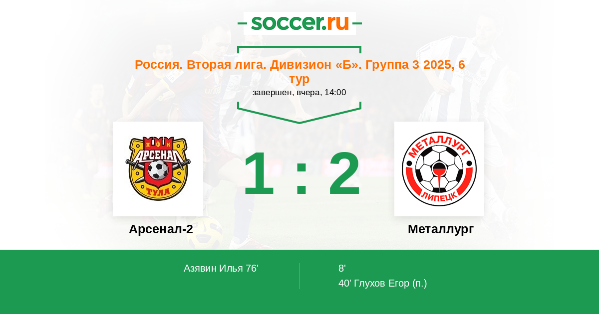 Протокол матча Арсенал-2 против Металлург