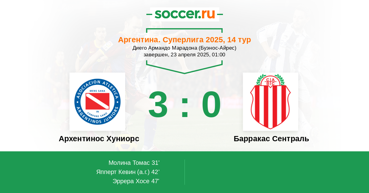 Протокол матча Архентинос Хуниорс против Барракас Сентраль
