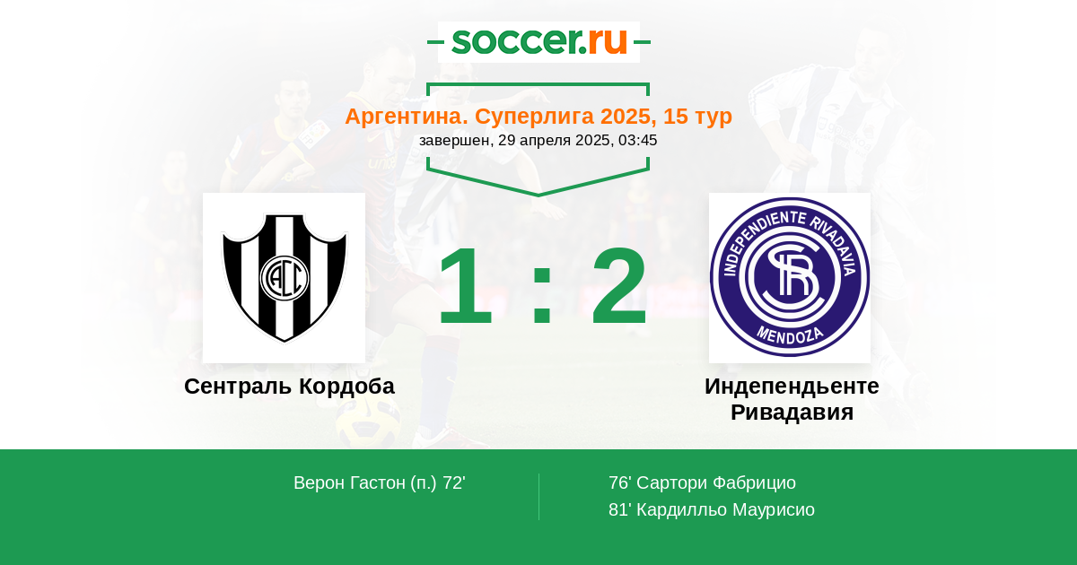 Протокол матча Сентраль Кордоба против Индепендьенте Ривадавия