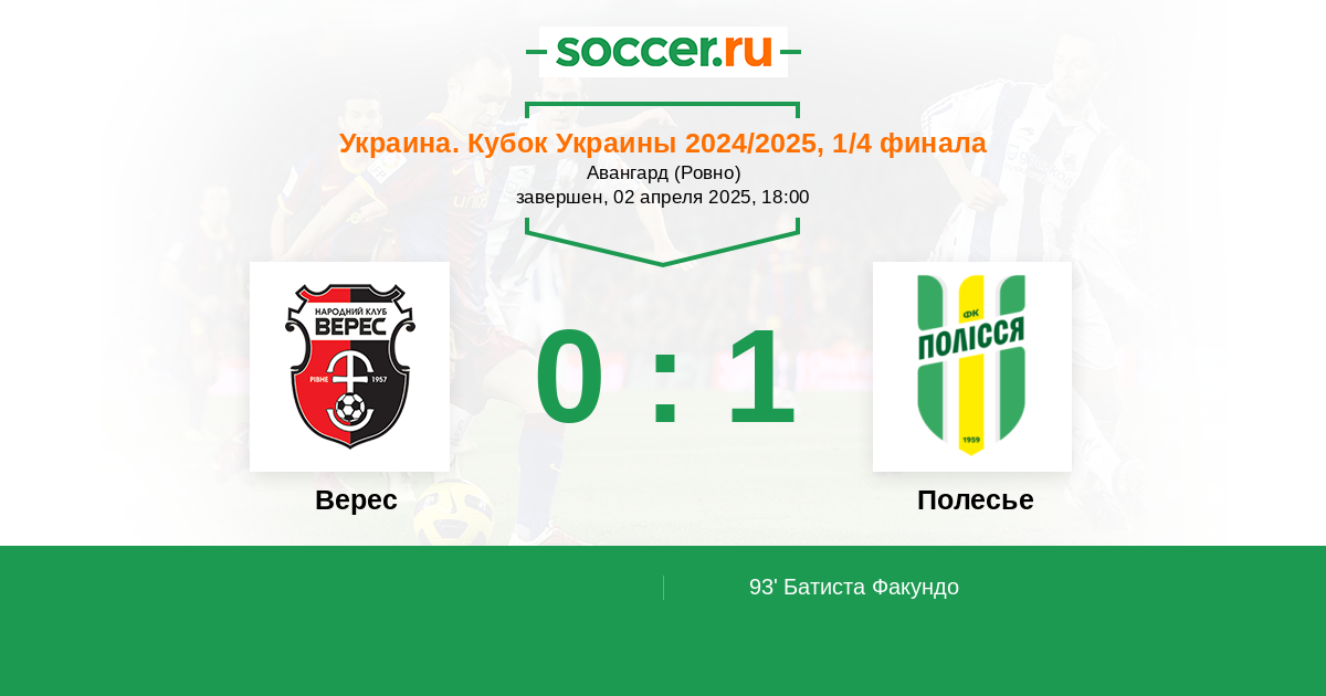 Протокол матча Верес против Полесье