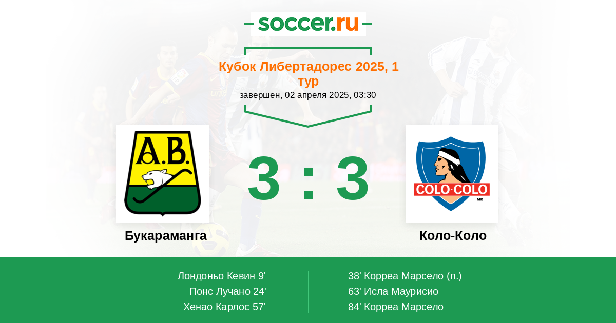 Протокол матча Букараманга против Коло-Коло