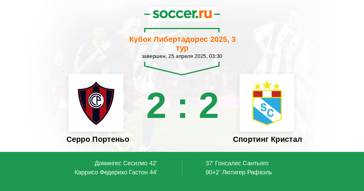 Протокол матча Серро Портеньо против Спортинг Кристал