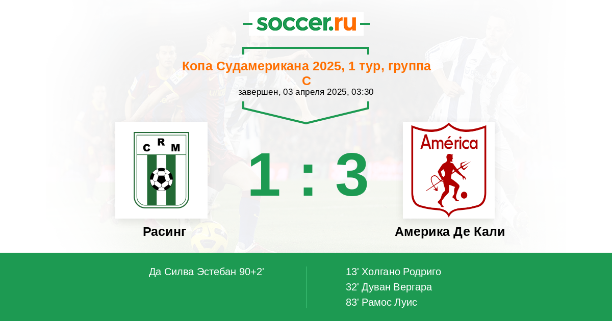 Протокол матча Расинг против Америка Де Кали