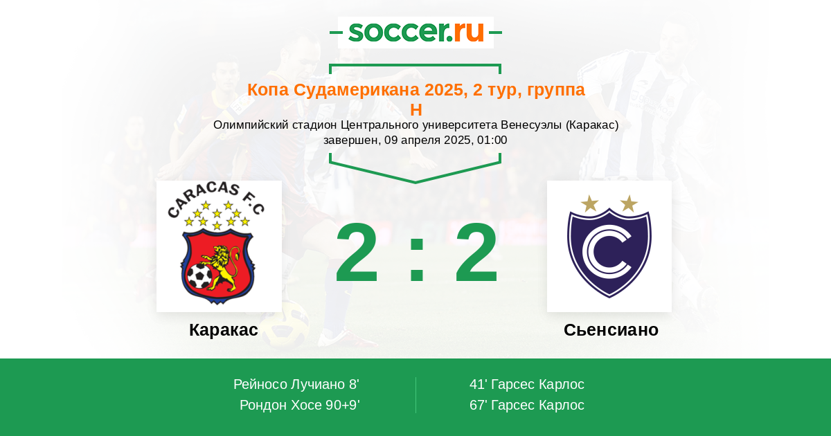 41' (1:1) Гарсес Карлос (21) (Бенитес Луис (20))