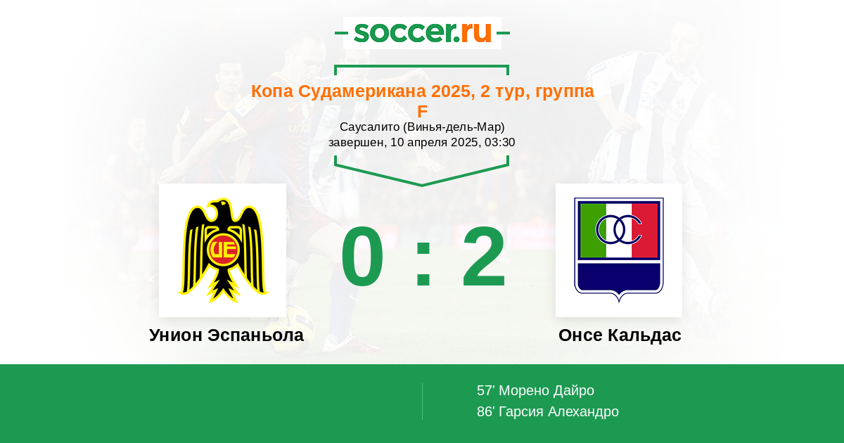 Протокол матча Унион Эспаньола против Онсе Кальдас