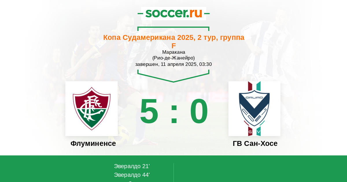 Протокол матча Флуминенсе против ГВ Сан-Хосе