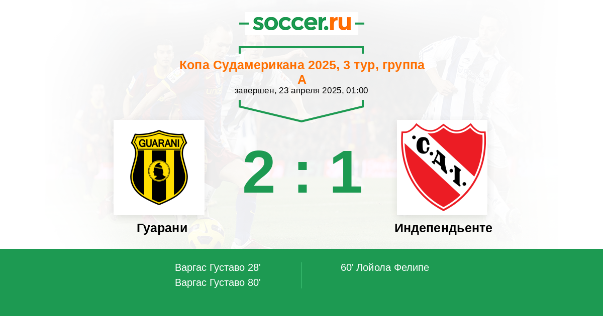 Протокол матча Гуарани против Индепендьенте