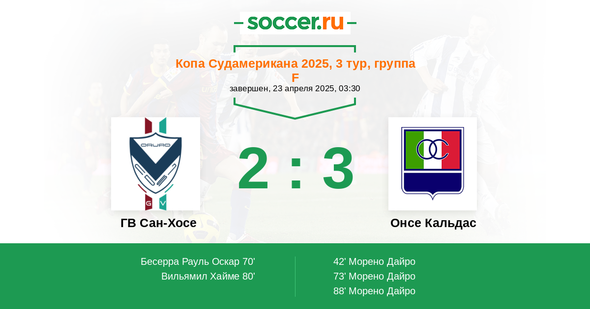 Протокол матча ГВ Сан-Хосе против Онсе Кальдас