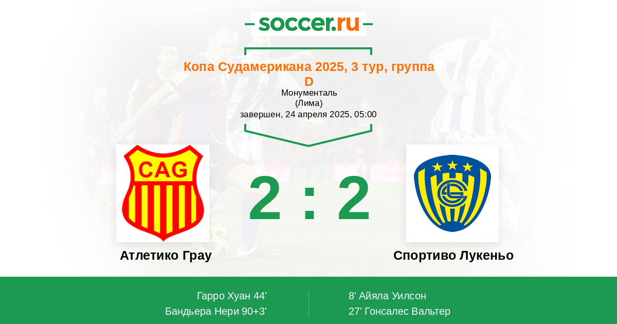 Протокол матча Атлетико Грау против Спортиво Лукеньо