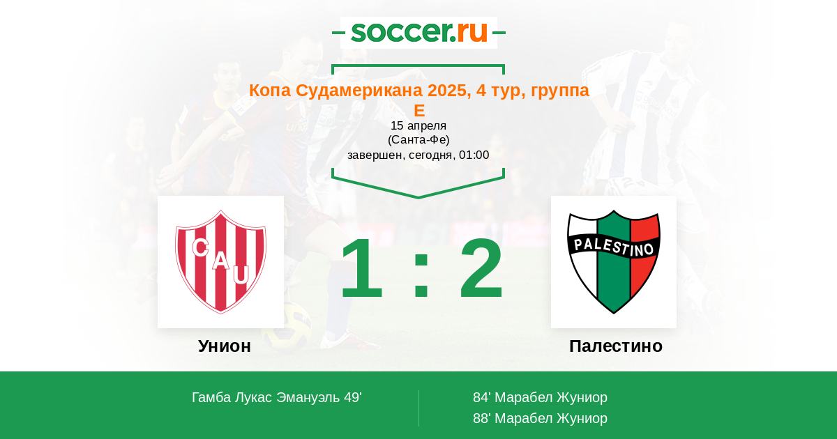 Протокол матча Унион против Палестино