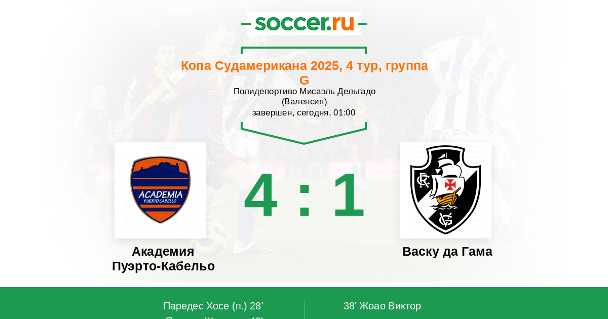 Протокол матча Пуэрто-Кабельо против Васку да Гама