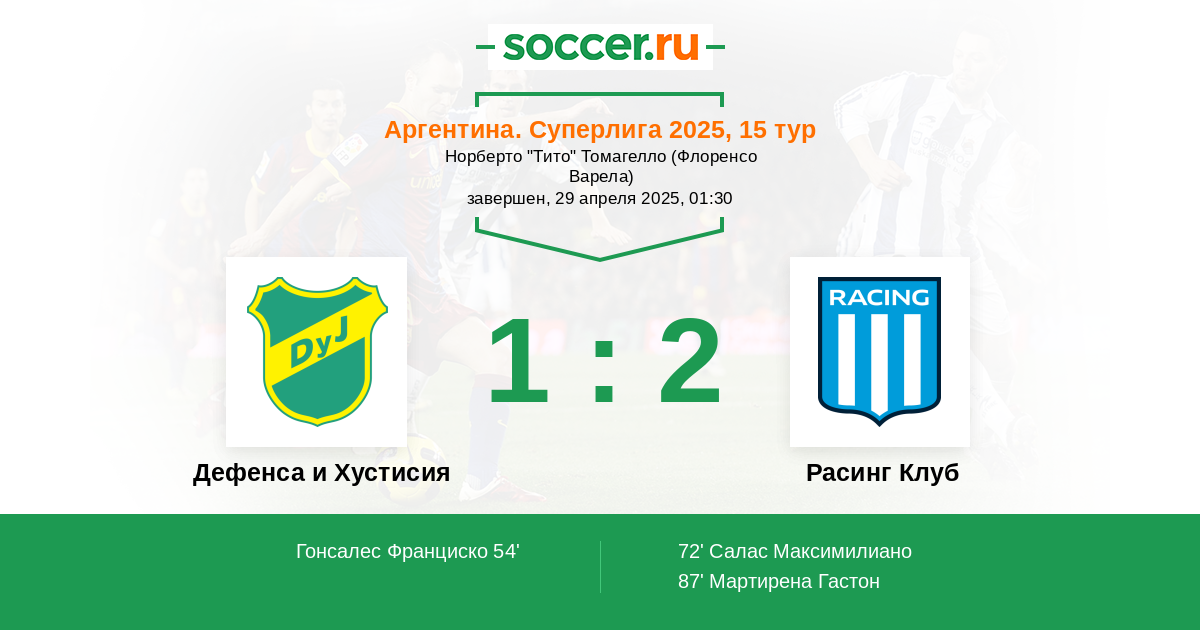 Протокол матча Дефенса и Хустисия против Расинг Клуб