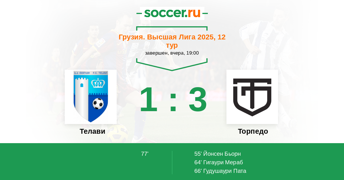 66' (0:3) Гудушаури Пата (20) (Йонсен Бьорн (9))
