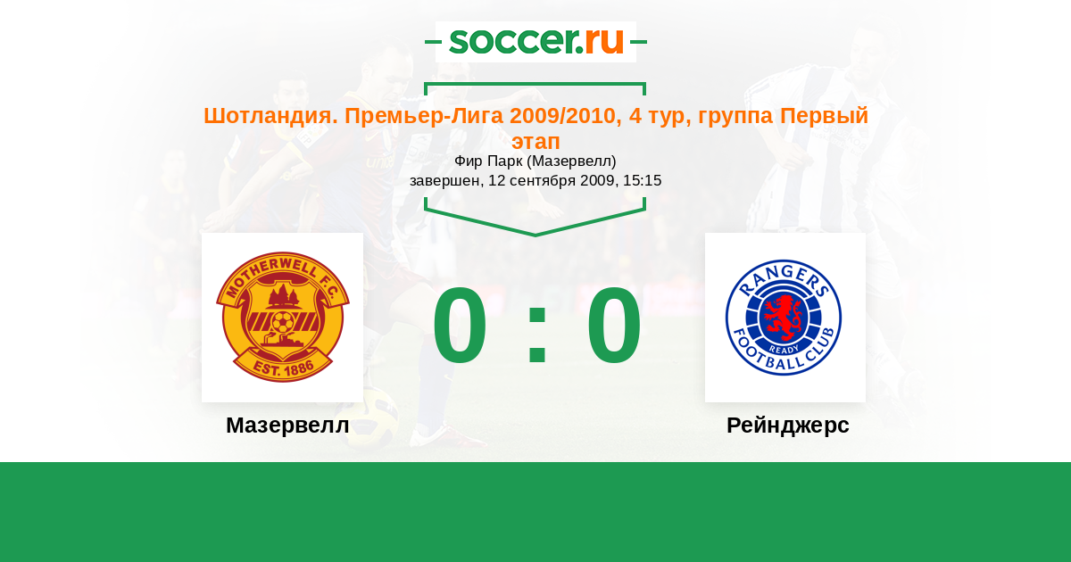 Шотландия. Премьер-Лига 19.12.2009 Рейнджерс Логотип футбольный клуб Рейнджерс (Глазго) 6:1 Логотип футбольный клуб Мазервелл Мазервелл