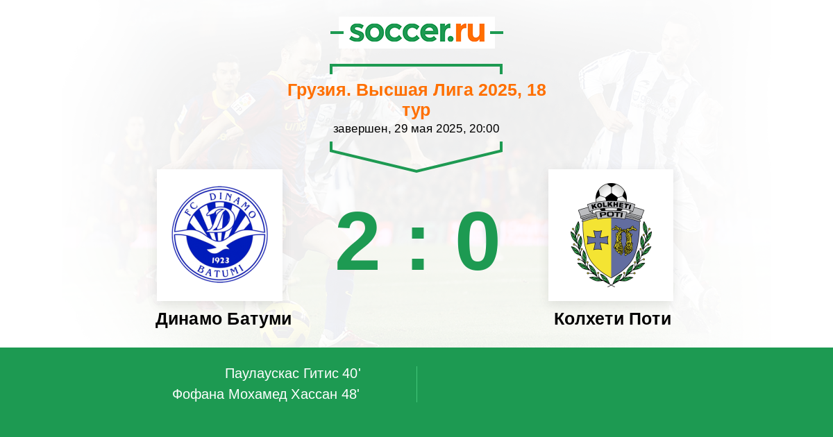Протокол матча Динамо Батуми против Колхети Поти
