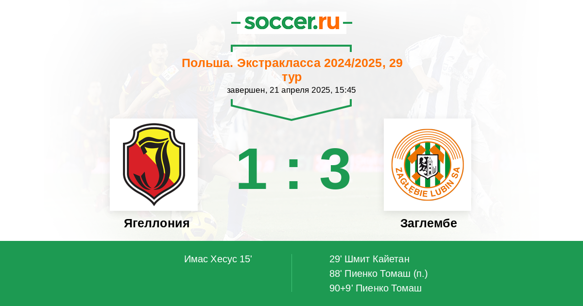 29' (1:1) Шмит Кайетан (77) (Пиенко Томаш (21))