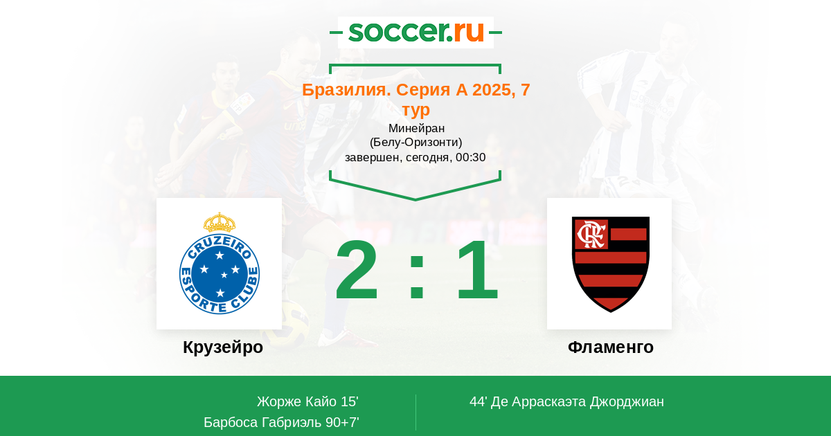 Гол90+7' (2:1) Барбоса Габриэль (9)