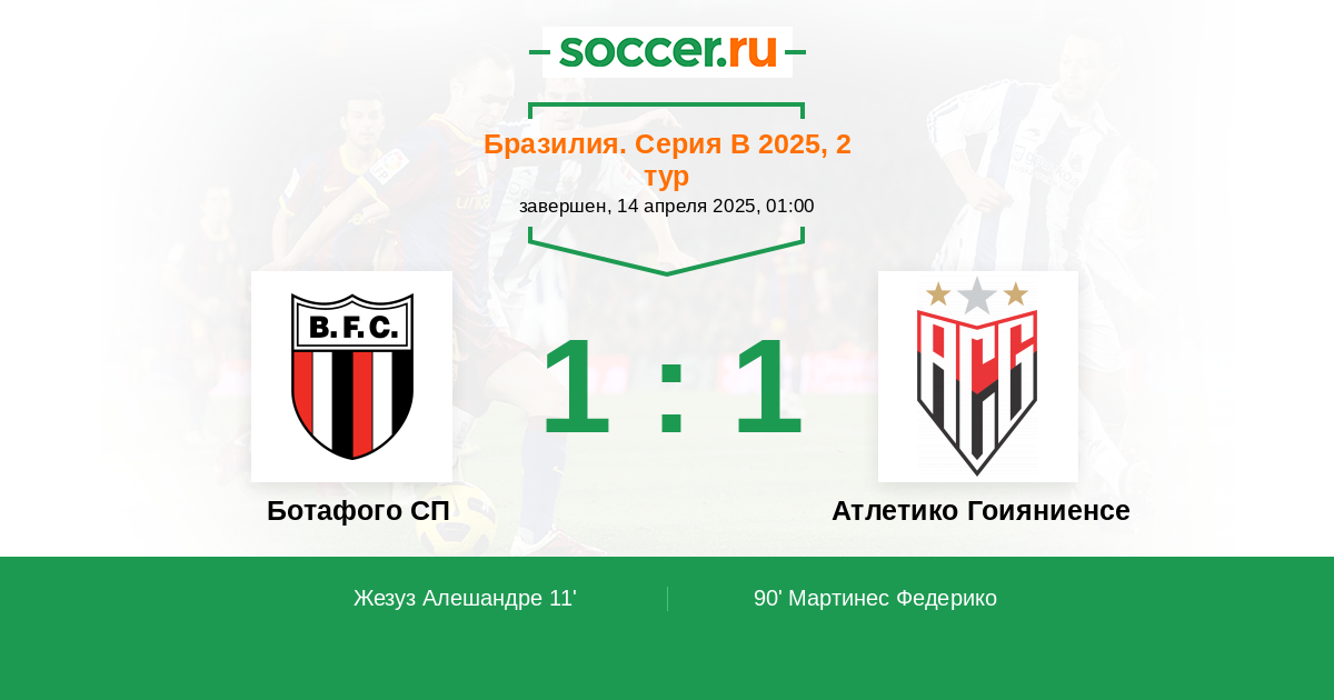 Протокол матча Ботафого СП против Атлетико Гоияниенсе