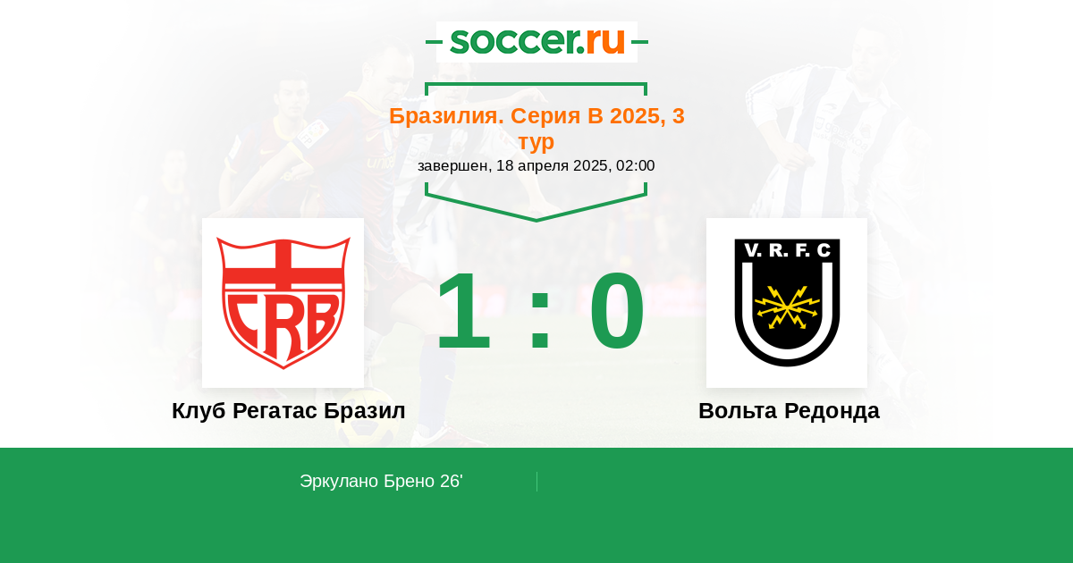 Протокол матча Клуб Регатас Бразил против Вольта Редонда