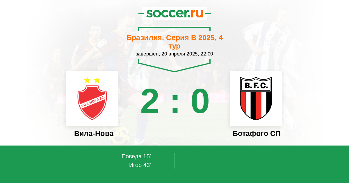 Протокол матча Вила-Нова против Ботафого СП