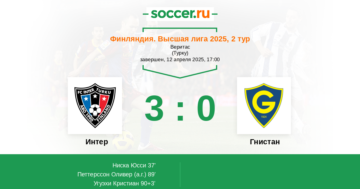 89' (2:0) Автогол Петтерссон Оливер (4)