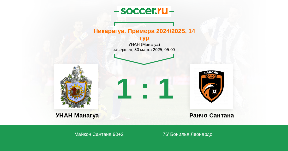 Протокол матча УНАН Манагуа против Ранчо Сантана
