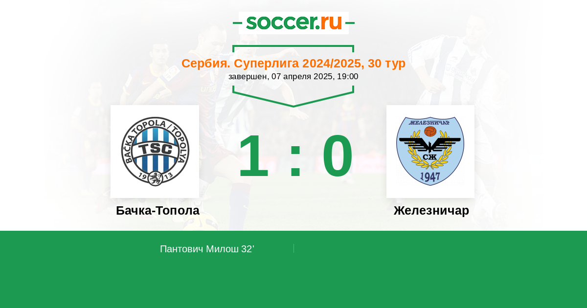 32' (1:0) Пантович Милош (27) (Савич Драголюб (21))
