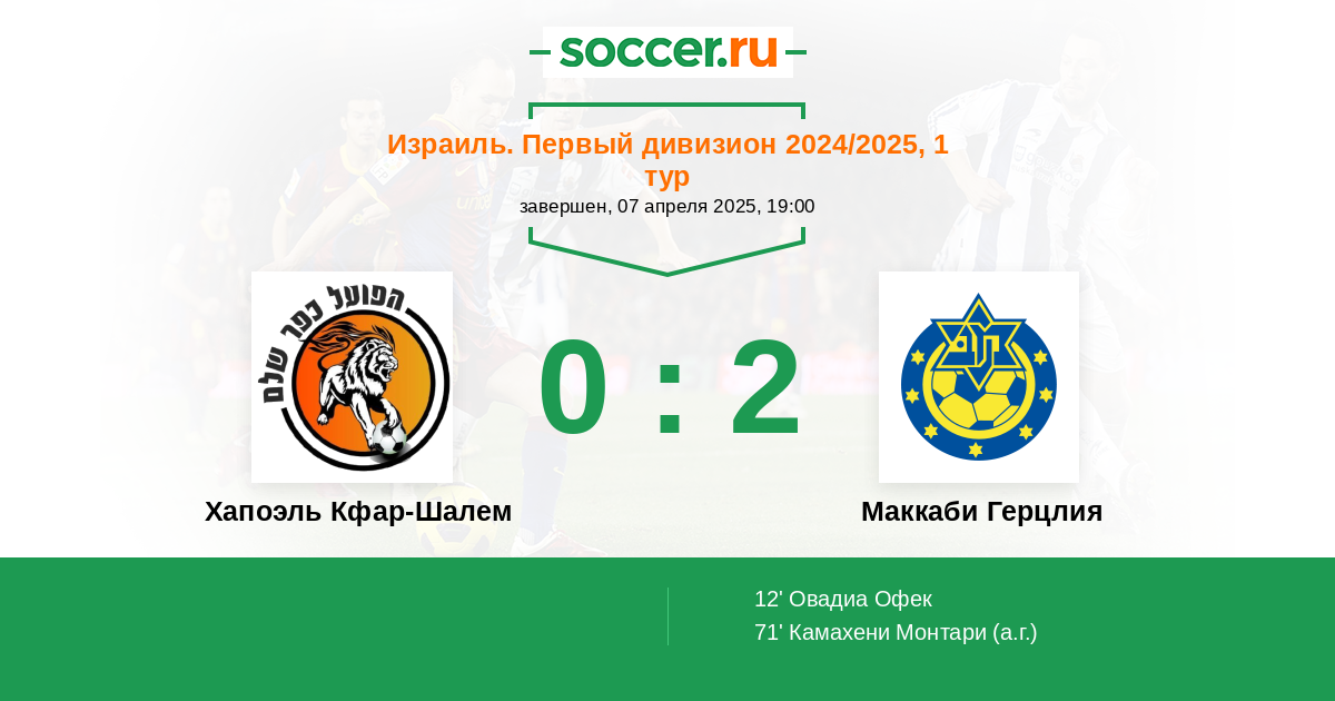Протокол матча Хапоэль Кфар-Шалем против Маккаби Герцлия