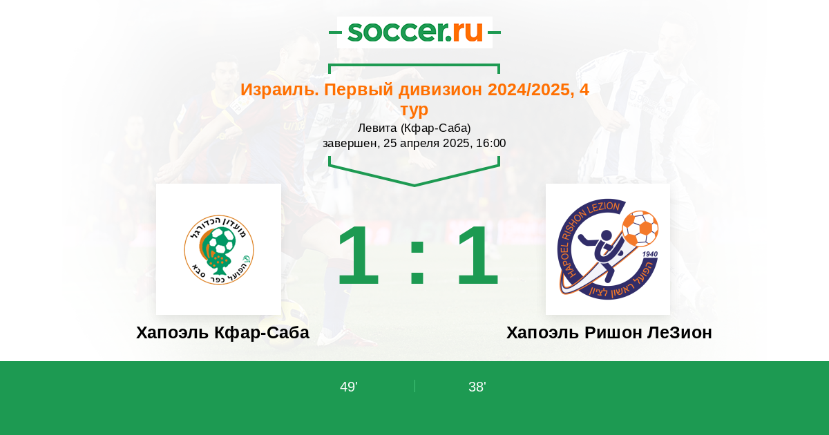 Протокол матча Хапоэль Кфар-Саба против Хапоэль Ришон ЛеЗион