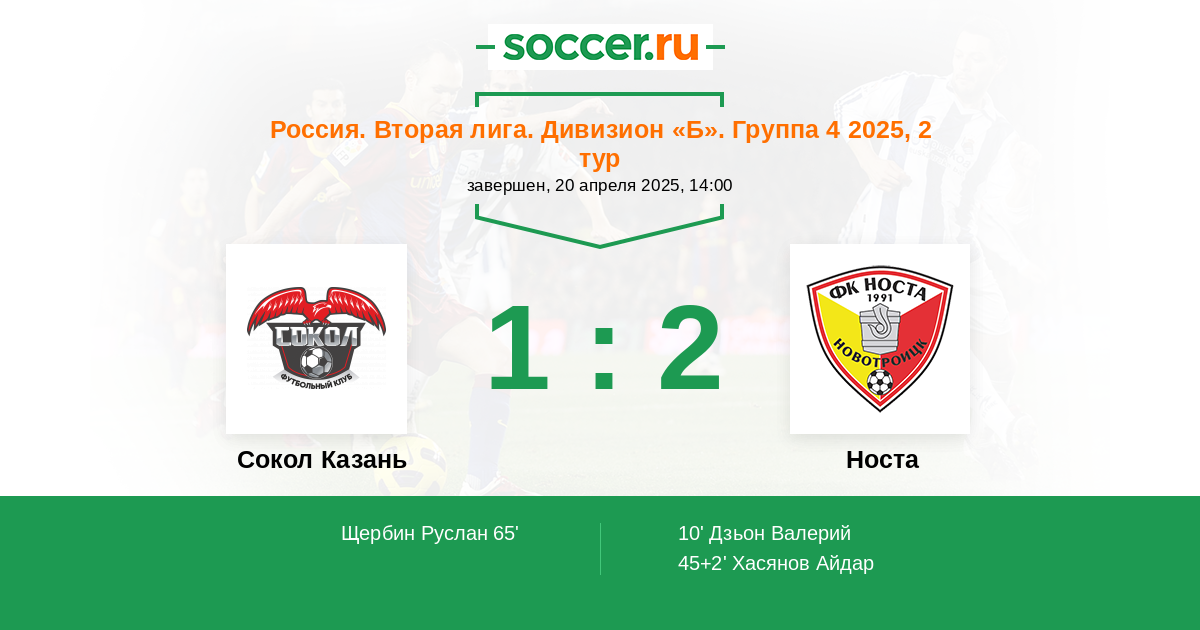 Протокол матча Сокол Казань против Носта