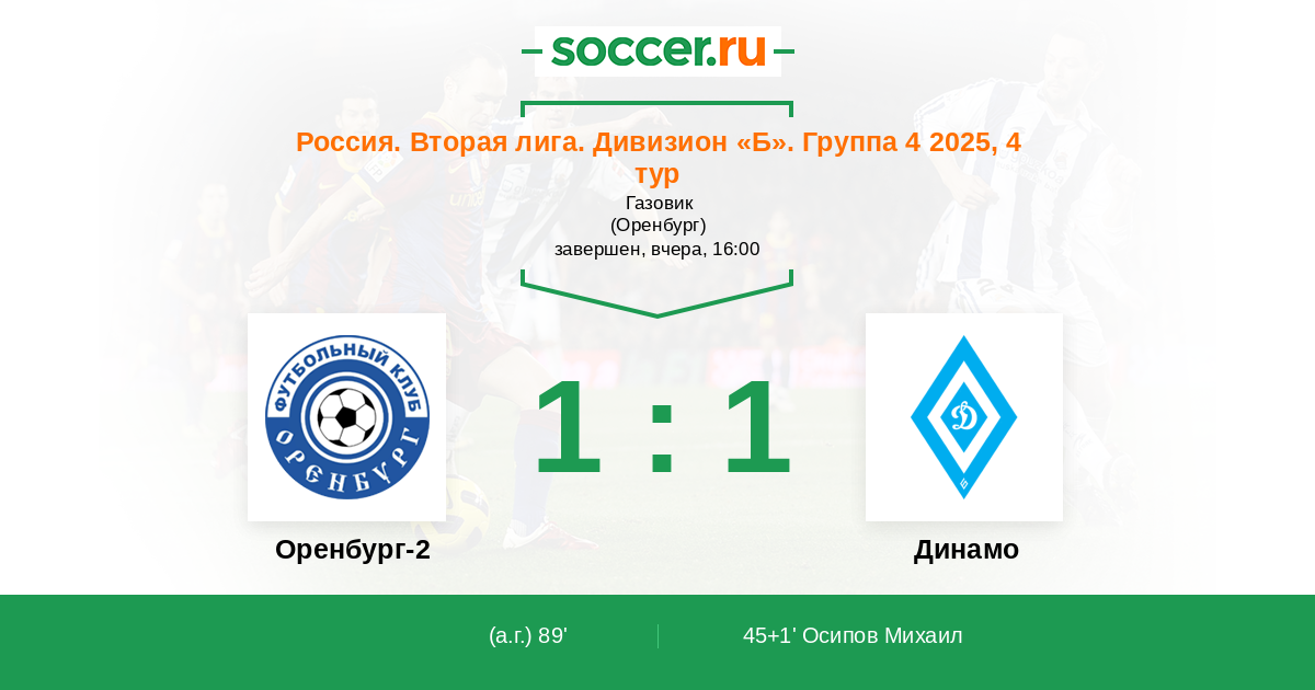 Протокол матча Оренбург-2 против Динамо Барнаул