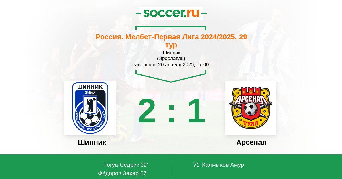 Протокол матча Шинник против Арсенал