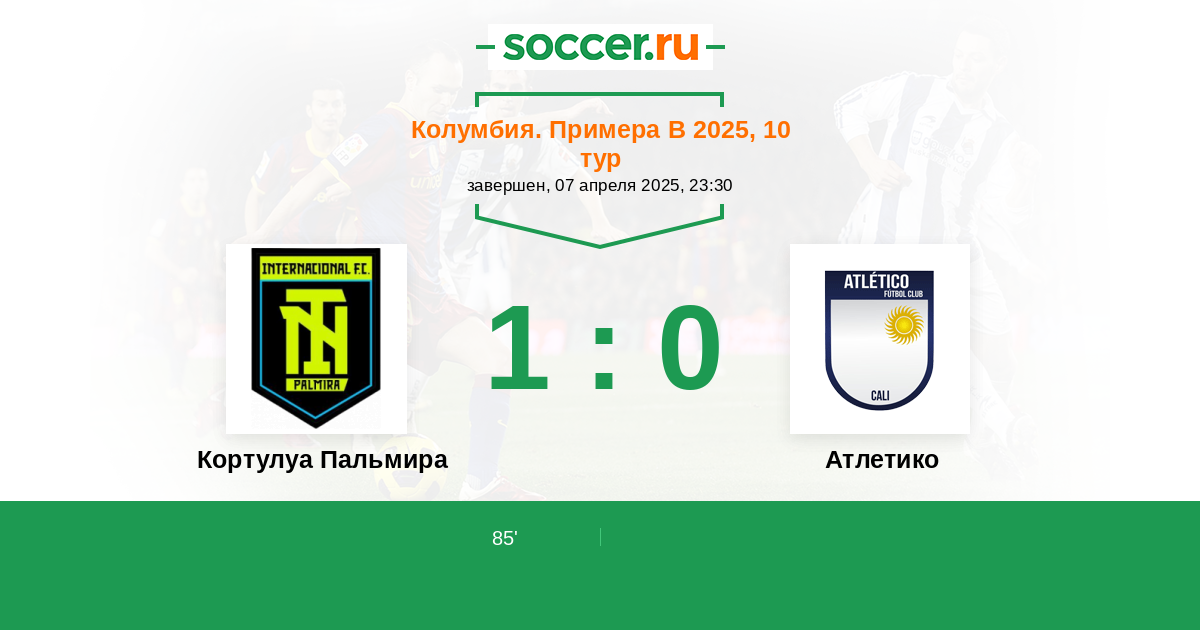 Протокол матча Кортулуа Пальмира против Атлетико Кали