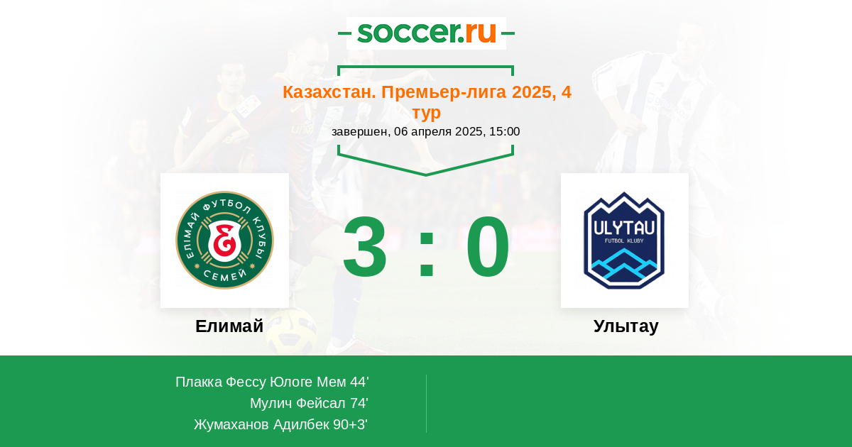 Протокол матча Елимай против Улытау