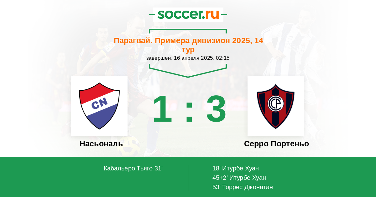 31' (1:1) Кабальеро Тьяго (10) (Прието Ричард Фабиан (27))