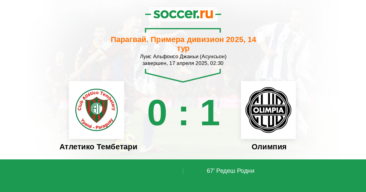 Протокол матча Атлетико Тембетари против Олимпия
