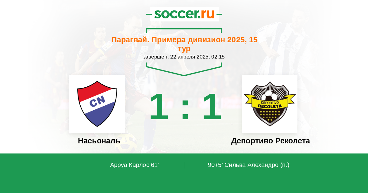61' (1:0) Арруа Карлос (8) (J. L. Alfaro)
