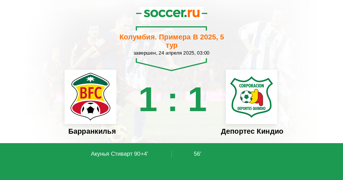 Гол90+4' (1:1) Акунья Стиварт