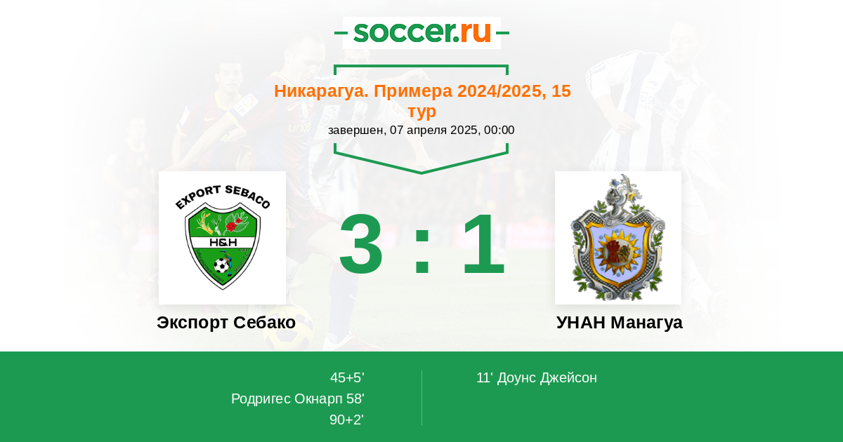 Протокол матча Экспорт Себако против УНАН Манагуа