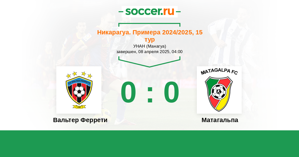 Протокол матча Вальтер Феррети против Матагальпа