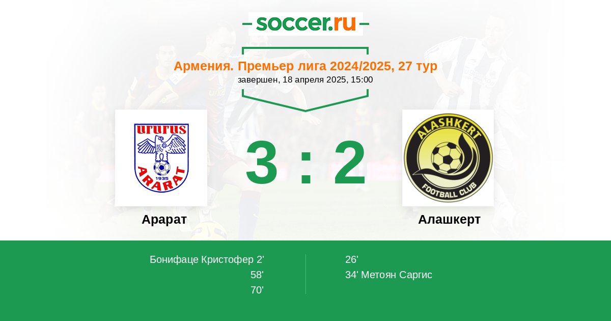 Протокол матча Арарат против Алашкерт