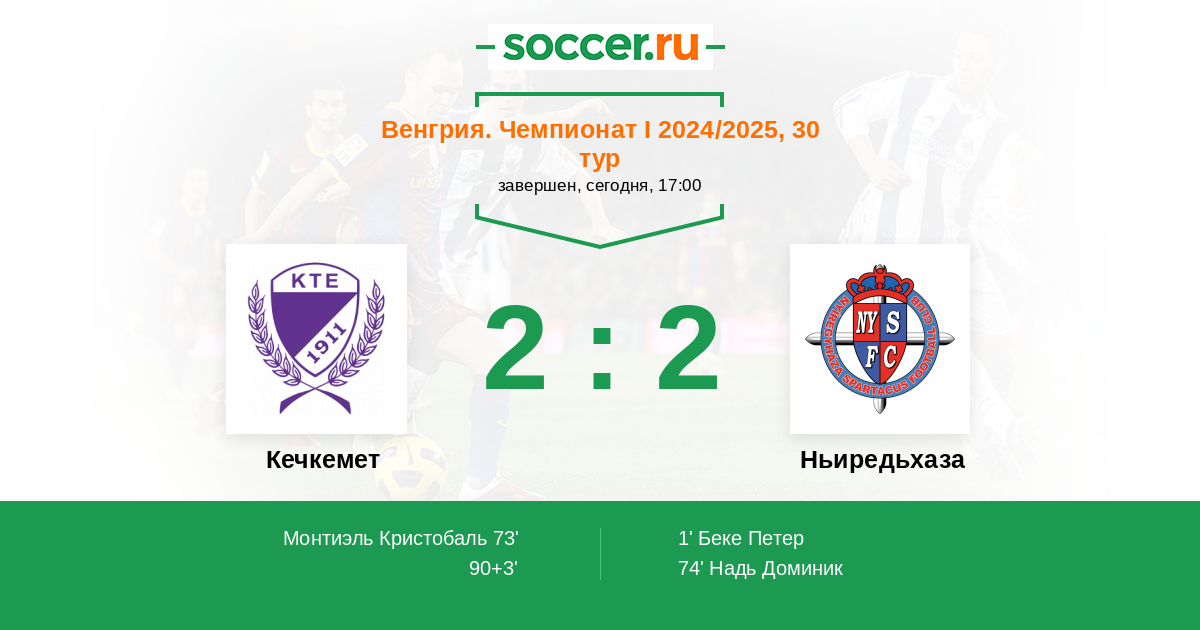 Протокол матча Кечкемет против Ньиредьхаза