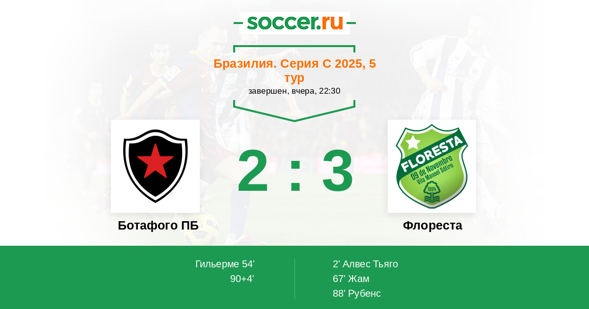 Протокол матча Ботафого ПБ против Флореста