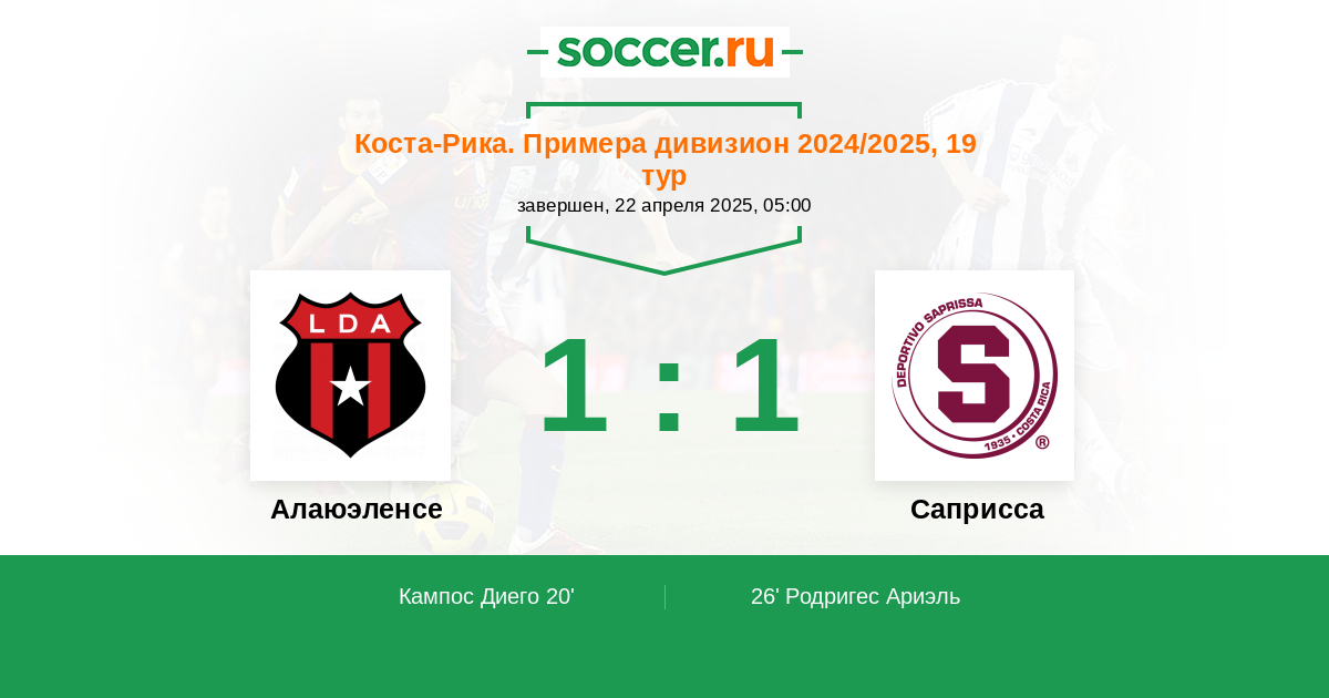 Протокол матча Алаюэленсе против Саприсса