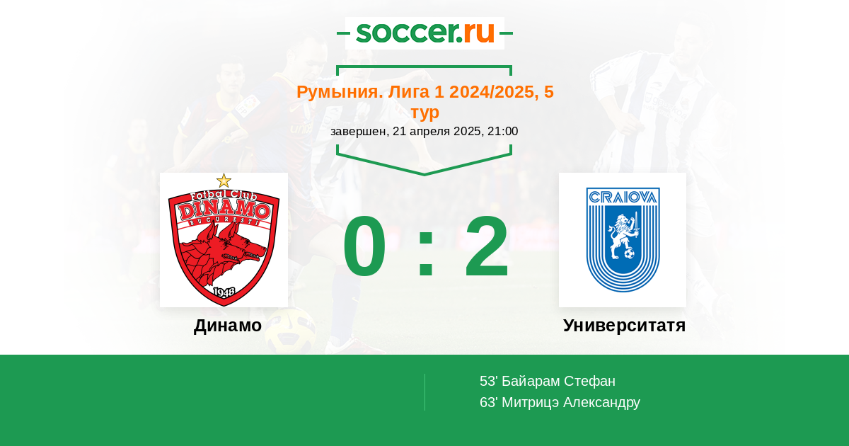 Протокол матча Динамо против Университатя Крайова