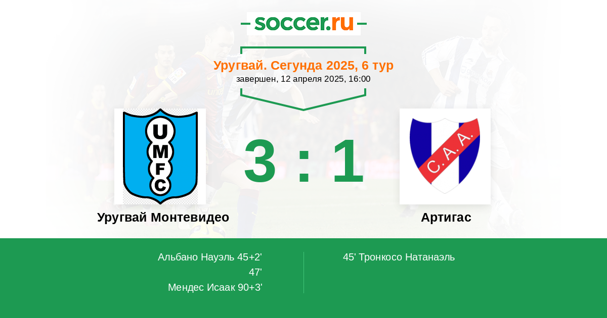 Протокол матча Уругвай Монтевидео против Артигас