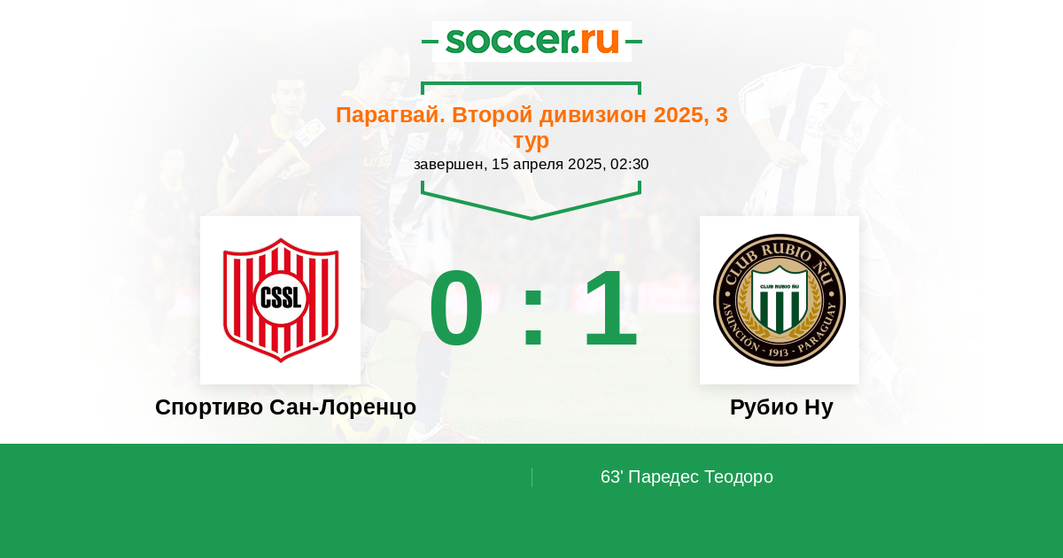 Протокол матча Спортиво Сан-Лоренцо против Рубио Ну