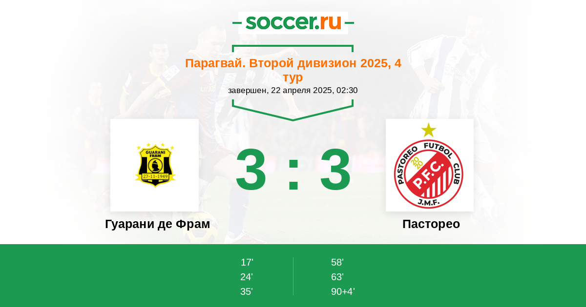 Протокол матча Гуарани де Фрам против Пасторео